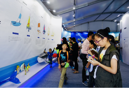 我找了一位正在觀看帆船知識(shí),看起來比較面善的阿姨,鼓足勇氣走上去打了個(gè)招呼,并向她說明了我的來意,問是否可以打擾她一下,采訪她幾個(gè)問題,阿姨欣然答應(yīng)。