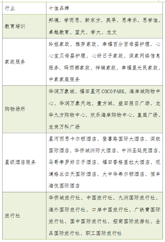 教育培訓(xùn)方面20個(gè)課外培訓(xùn)機(jī)構(gòu)品牌的凈推薦值得分均為正值,整體平均得分為13.7,邦德教育以19.9的高分榮登教育培訓(xùn)行業(yè)榜單首位;家政服務(wù)行業(yè)20家調(diào)查企業(yè)平均分值為12.8,玲姐家政以高于平均值7.4分,排名家政行業(yè)第一位;購(gòu)物場(chǎng)所方面選取20家購(gòu)物中心,20家購(gòu)物中心得分同樣為正值,整體平均分為19.8,華潤(rùn)萬(wàn)象城以28.5的高分獲得購(gòu)物中心排行榜桂冠,福田星河coco park以0.1分的劣勢(shì)排在榜單第二位;星級(jí)酒店服務(wù)方面,平均凈推薦值達(dá)到30.8分,高于同期發(fā)布其他四個(gè)行業(yè),排名第一的是星河麗思卡爾頓酒店,凈推薦值為37.0分;旅行社方面,排名第一的旅行社為華僑城旅行社評(píng)分29.8分,但20家旅行社之間評(píng)分差異較大,凈推薦值僅為12.0分,低于同期發(fā)布的其他行業(yè)。