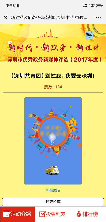 作為中國"最互聯(lián)網(wǎng)城市〃,深圳近年來大力建 設(shè)政務(wù)新媒體平臺矩陣,不斷建立健全工作機制,搭 建起為市民服務(wù)的新渠道、新平臺,涌現(xiàn)出許多優(yōu)秀 的政務(wù)新媒體。廣大市民網(wǎng)友,有哪些政務(wù)微信么, 讓你"欲罷不能〃,有哪位小編讓你〃刻骨銘心〃, 有哪些作品讓你"秒轉(zhuǎn)秒贊"?請為他們投上寶貴一 票吧!本次投票活動作為"新時代新政務(wù)備體"—— 深圳市優(yōu)秀政務(wù)新媒體評選(2017年度)活動的重要 組成部分,其結(jié)果將作為專家評審類獎項評選的重要 參考細,權(quán)重占比50%。