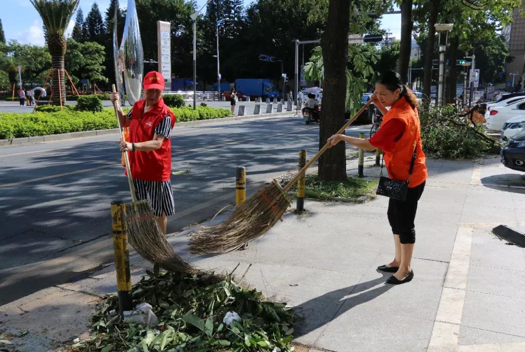 龍華街道工作人員與義工協(xié)力處理倒伏樹木