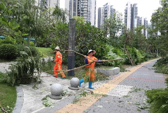 這幾天,經(jīng)過環(huán)衛(wèi)工人和綠化工人的辛勤勞動,全區(qū)累計清理生活垃圾352.6噸、綠化垃圾587.4噸,清理倒伏樹木4026棵、損毀樹枝2132株。“臺風過后樹葉、垃圾太多,這幾天特別忙,特別辛苦,沒有停過?!惫ぷ髟倜υ倮?,梁忠還是笑著說,“有這么多兄弟姐妹一起清理,看到街道慢慢變干凈,覺得再辛苦也是值得的!”