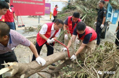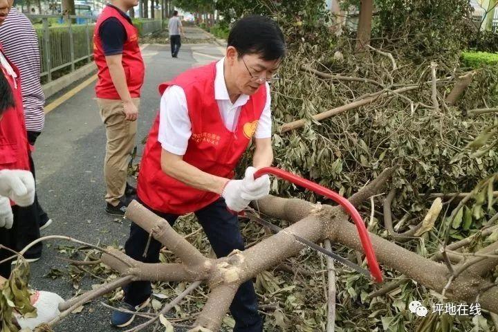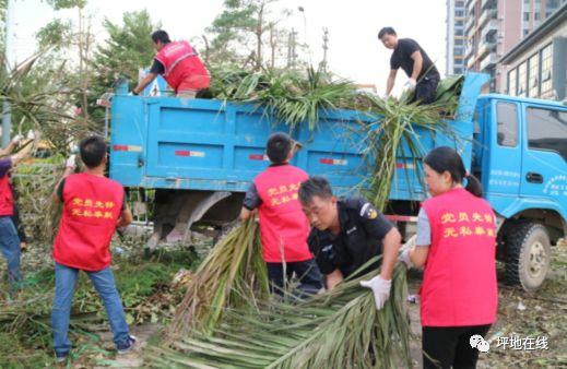 臺風(fēng)過后,9月17日,坪地街道黨工委書記曾憲旺就向全街道黨員發(fā)出號召:希望我們坪地的黨員干部要向抗擊臺風(fēng)時(shí)一樣,在災(zāi)后恢復(fù)的工作中沖在前面,叫響“看我的、跟我來”。3天來,坪地黨員干部保持了戰(zhàn)時(shí)狀態(tài),災(zāi)后第一天就基本恢復(fù)了轄區(qū)供水、供電和主要道路的交通,9月20日的主題黨日活動中,清潔主要干道35條,清理路面12公里,砍斷無移植價(jià)值樹木16棵,清理樹枝58車次。街道各社區(qū)市容環(huán)境基本得到恢復(fù)。