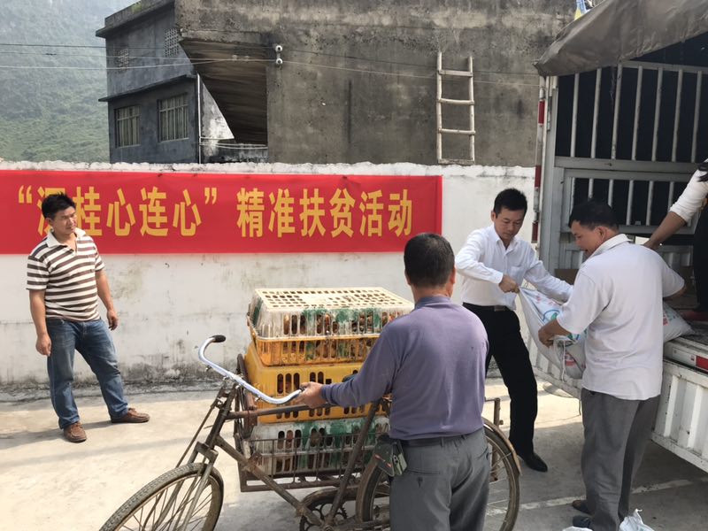 2017年,深圳農(nóng)商行的廣西6家機構(gòu)開展了“深桂心連心”精準扶貧活動,向所在地貧困戶免費發(fā)放農(nóng)業(yè)生產(chǎn)資料,通過采購等值的農(nóng)資(如雞、鴨、豬崽、農(nóng)作物種子與樹苗等)按戶發(fā)放給扶貧對象,待雞、鴨、豬崽和農(nóng)作物可出售時由廣西各機構(gòu)介紹銷售或負責(zé)回購,確保扶貧對象既能脫貧,又能提高致富能力。深桂心連心精準扶貧活動,共資助了299戶貧困戶,扶貧總投入為292879元。通過扶貧活動,帶動更多的貧困戶依靠辛勤勞動,脫貧致富。