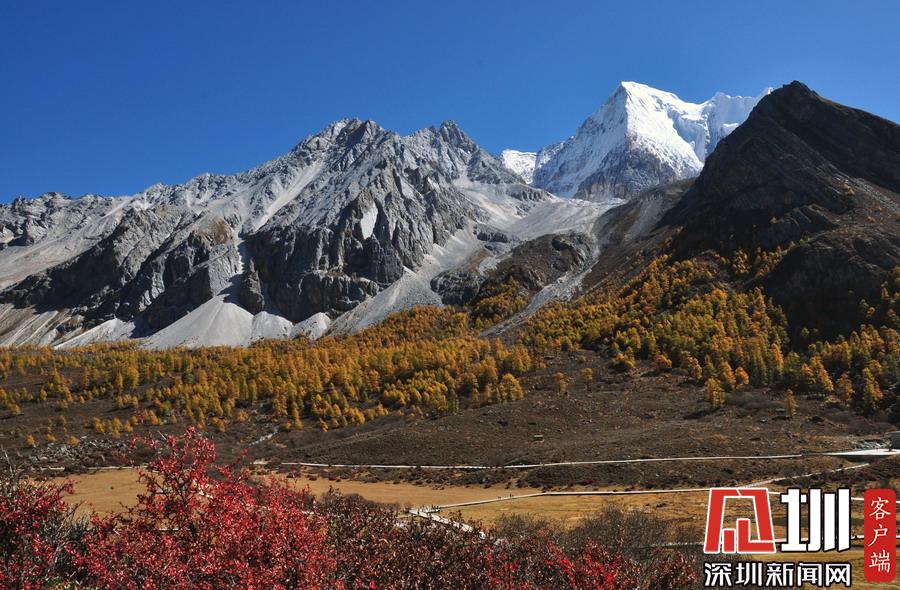 深秋時節(jié),天高云淡,四川西南部稻城亞丁景區(qū)滿山的落葉松在陽光映襯下呈現(xiàn)出金黃的色彩,加之深紅色灌木的點(diǎn)綴,又得用那句“上帝的調(diào)色板”來比喻了。李仁奇攝