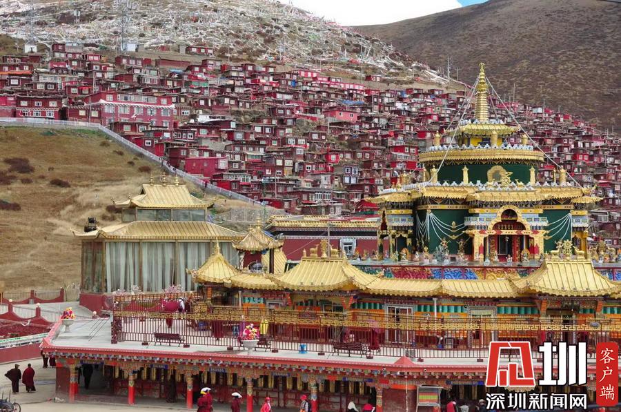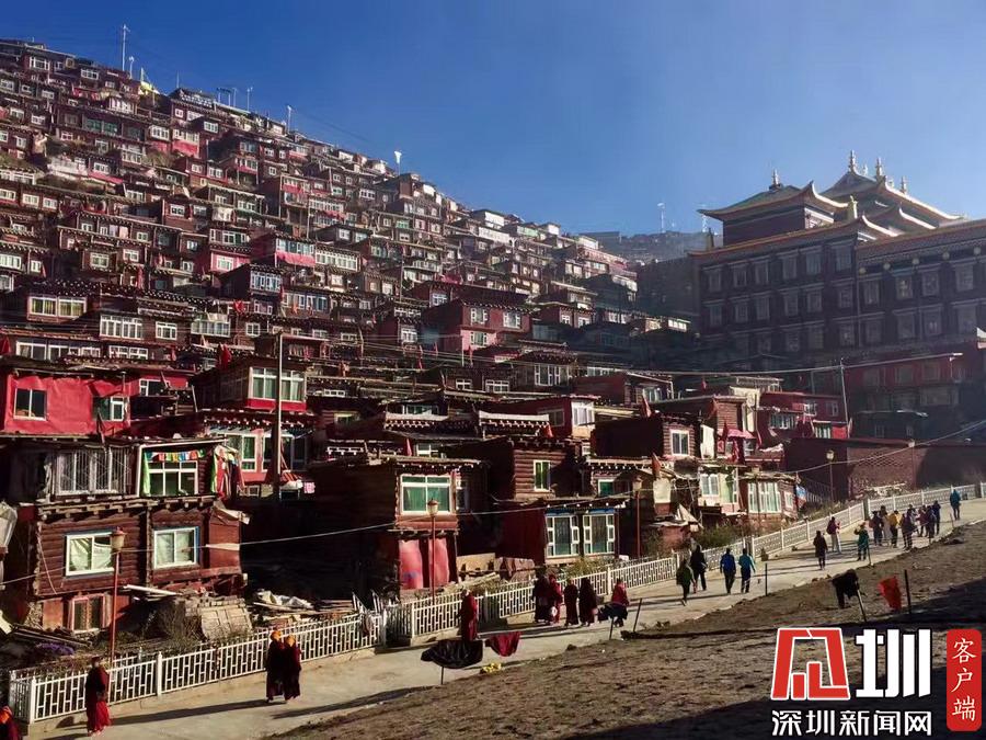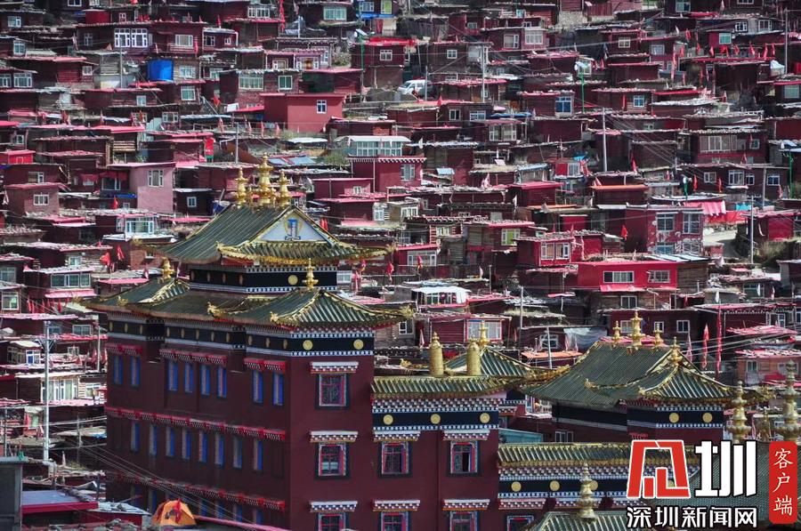色達(dá)五明佛學(xué)院距四川省甘孜州色達(dá)縣城20余公里,在一條海拔4000米左右、名叫喇榮溝的山溝里。李仁奇攝