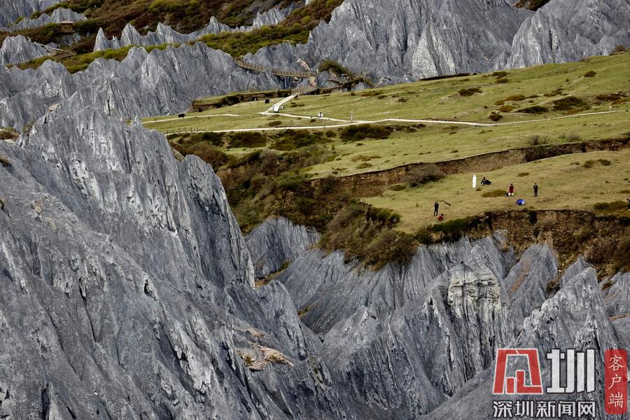 它是3年前開發(fā)建成的網(wǎng)紅景點(diǎn),全世界獨(dú)有的糜棱巖石林,面積4.7平方公里,海拔約3500米,被命名為“中國(guó)墨石公園”。李仁奇 攝