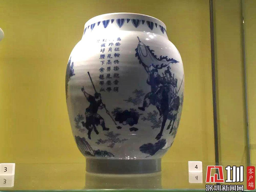 一件青花瓷瓶上有如下配圖詩(shī)文:“馬褂征鞍將褂袍,柳梢門外月兒高;男兒要帶封侯印,腰下常懸?guī)а丁!?/p>