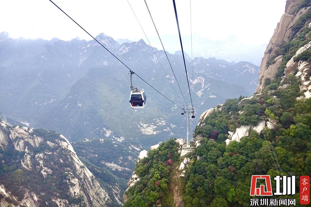 索道設備由法國波馬公司制造,整體安全與運營系統(tǒng)采用最尖端的客運索道技術。華山索道一覽。李仁奇攝。