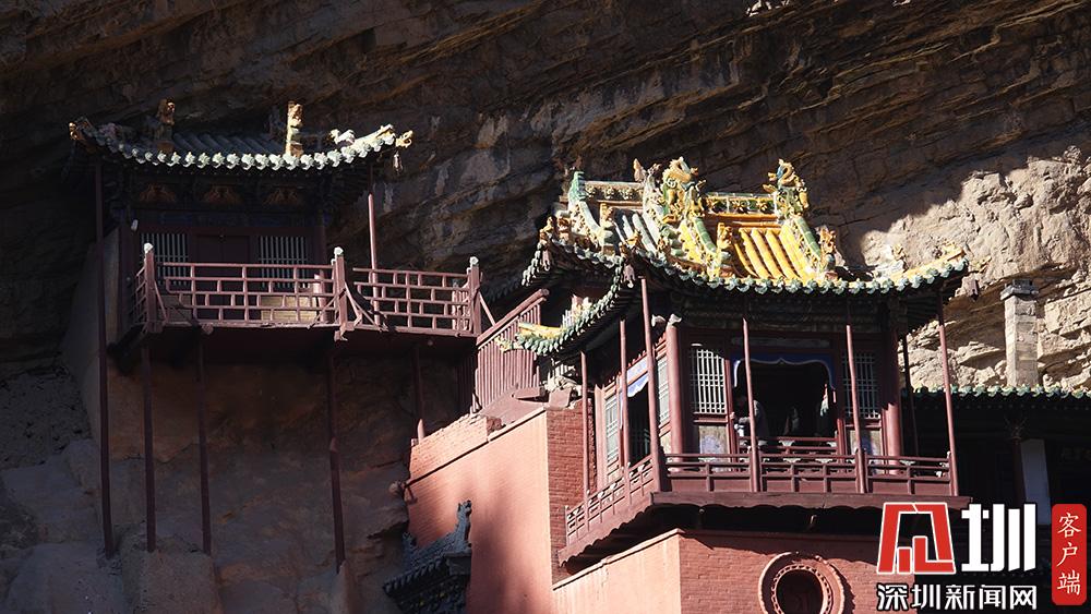 懸空寺建成于公元491年,是佛、道、儒三教合一的獨(dú)特寺廟。李仁奇攝。