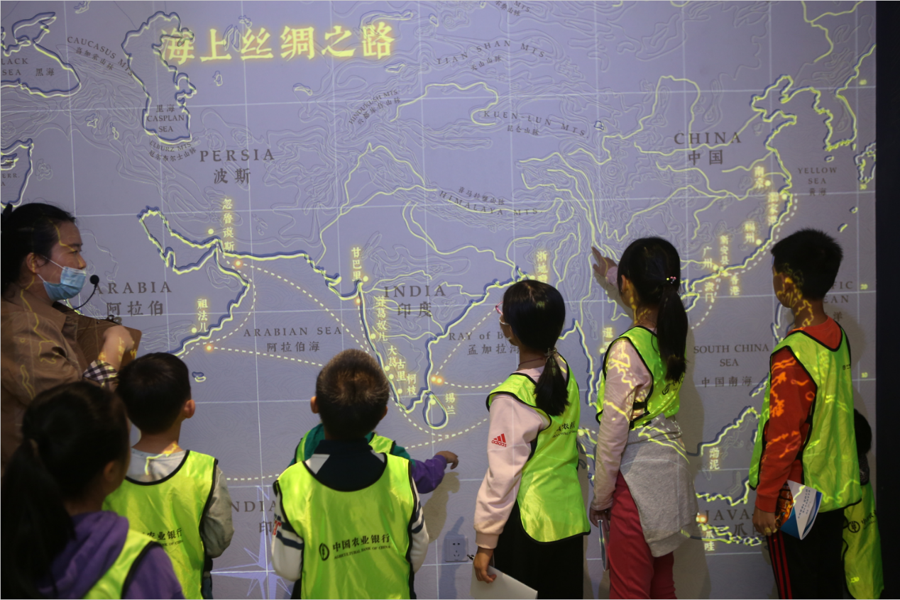 新安縣衙、東莞會館、報(bào)德祠、織金廣彩館、牌匾故事館、南頭古城博物館獻(xiàn)禮特區(qū)40周年展……小朋友們跟隨老師的步伐,認(rèn)真聆聽著古城歷史。南頭1820數(shù)字展廳的絹本國畫長卷《南頭繁會盛景圖》吸引著孩子們的注意,這幅別具特色的畫卷采用三維鏡頭呈現(xiàn)出一幅具有中國畫意境、專屬南頭的古代勝景。孩子們通過沉浸式體驗(yàn),穿越回清朝的南頭古城,感受著古時(shí)候南頭人民的生活。“原來南頭古城這么厲害,以前各國到廣州貿(mào)易的商船都要先??吭谶@里,‘粵東首府、港澳源頭’指的都是南頭古城?!笔畾q的赫赫興奮的告訴記者。作為深圳、香港城市發(fā)展的共同源頭,南頭古城的發(fā)展史在很大程度上就是一部深圳城市的發(fā)展史。