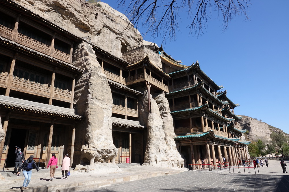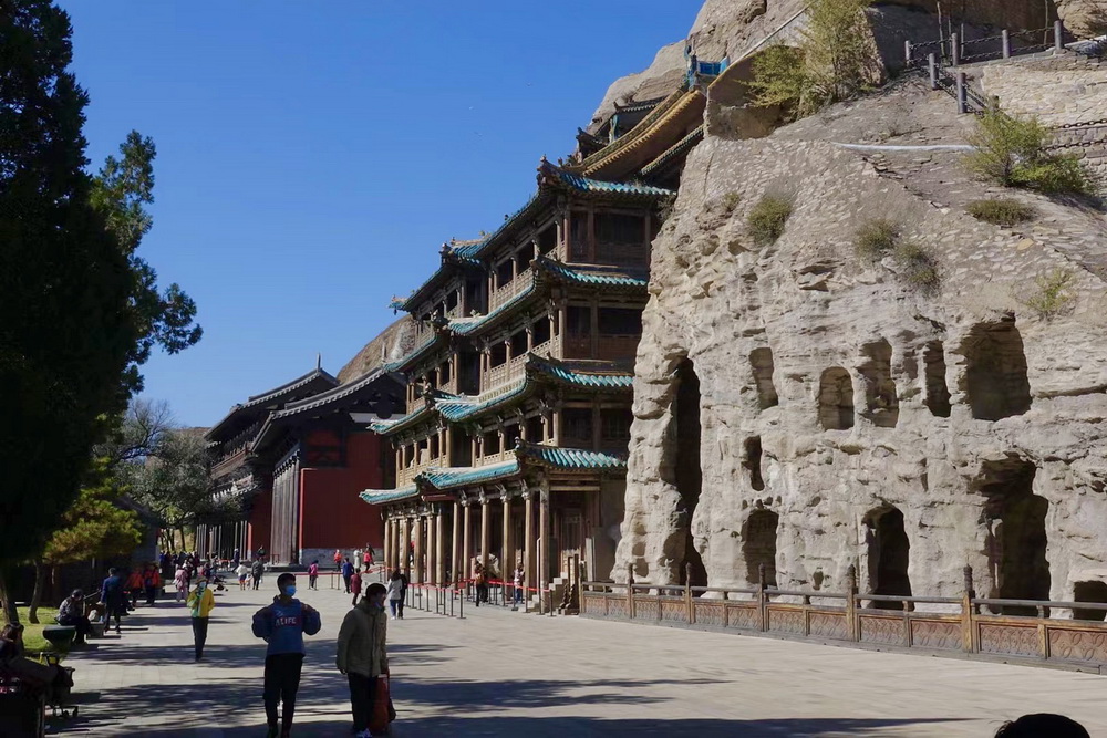 從外面看云岡石窟,經歷1500年時光的風雨侵襲,依然保持著挺拔的姿態(tài),不得不佩服古人當時的建筑工藝。李仁奇 攝