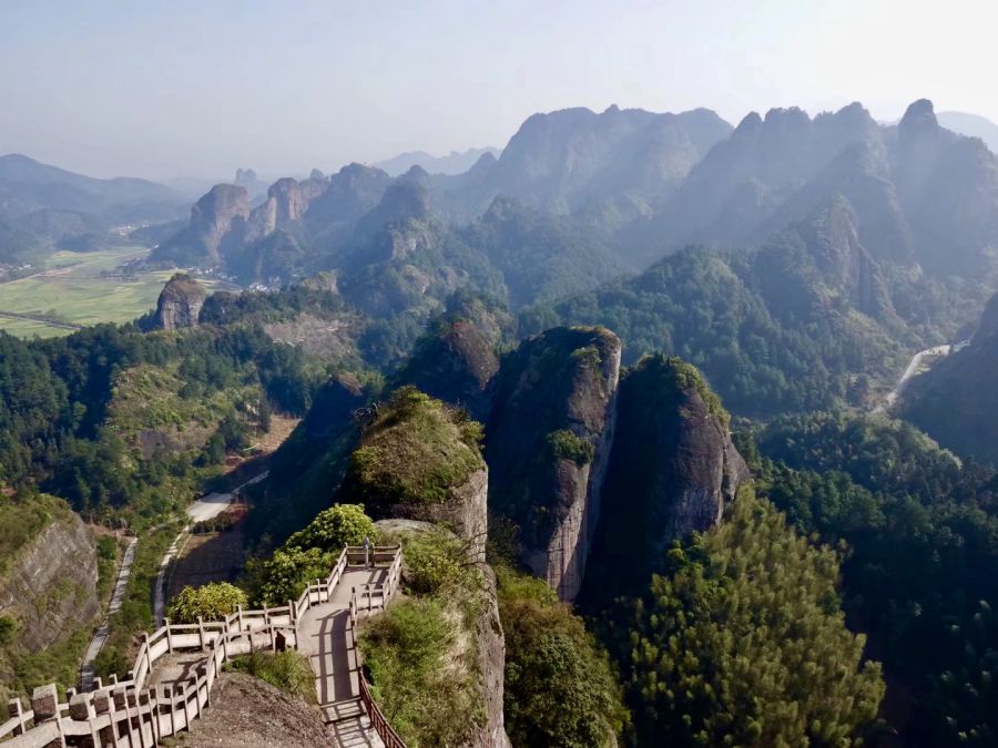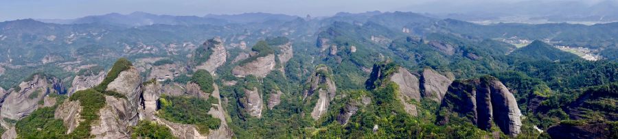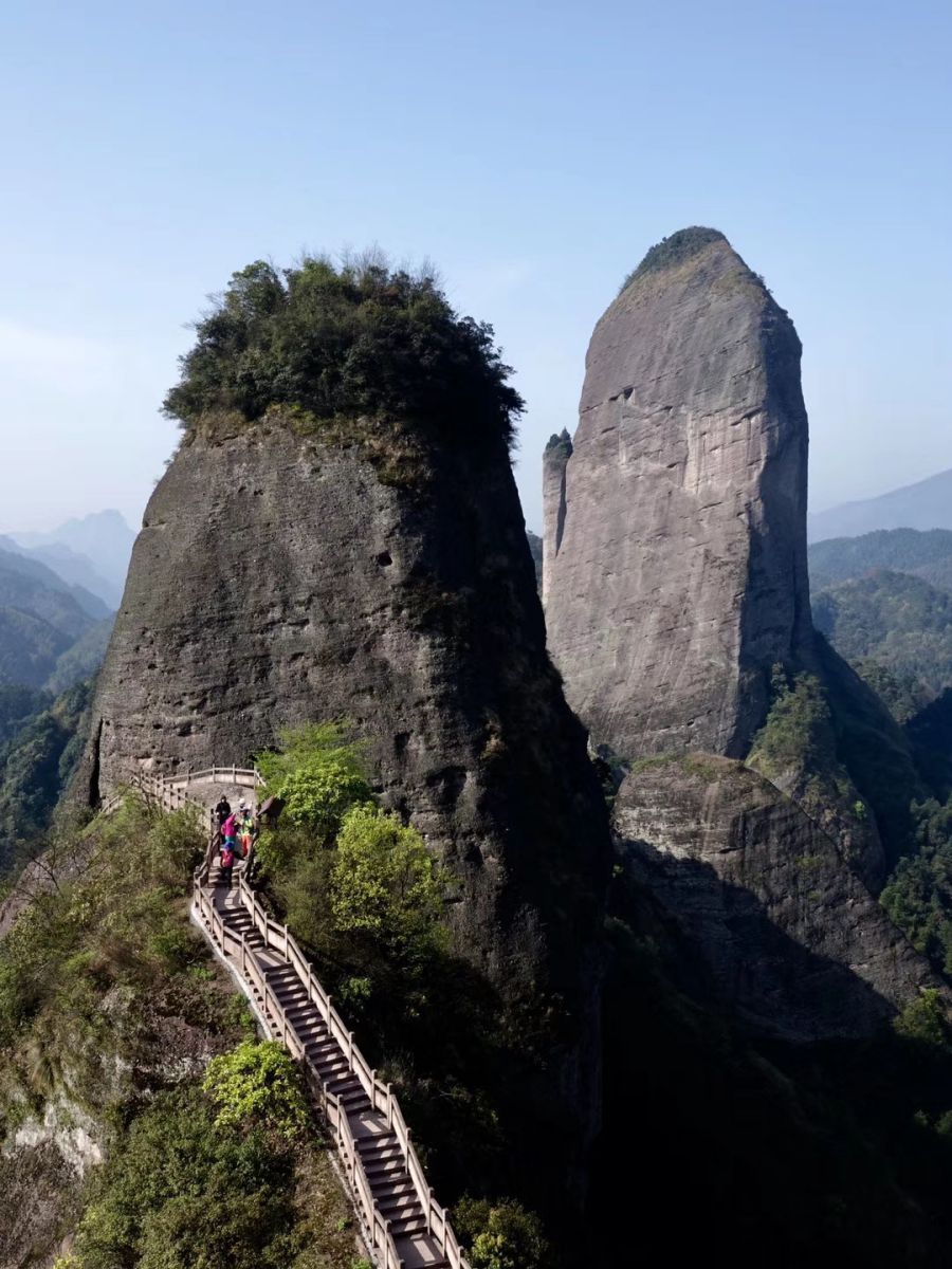 乘索道或步行登上八角寨觀景臺可以俯瞰崀山丹霞的全貌。李仁奇 攝