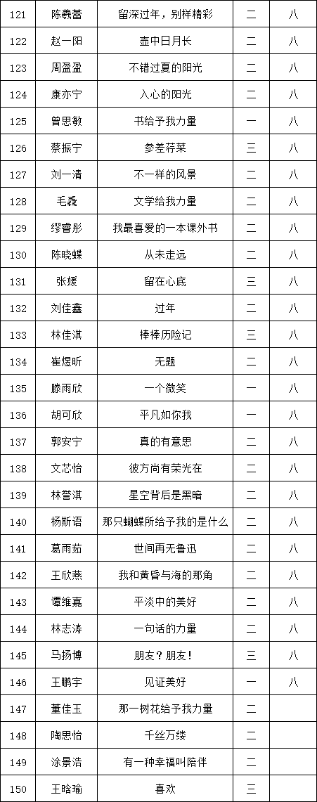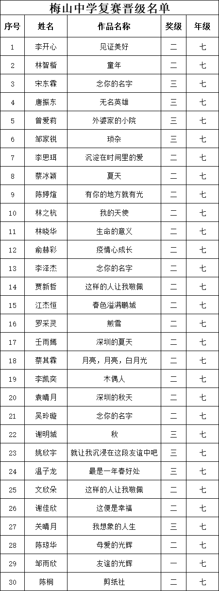 自2021年1月,活動征稿啟動以來,獲得了深圳市廣大中小學(xué)生、教師、文學(xué)愛好者的熱烈響應(yīng)積極參與,吸引了深圳百余所學(xué)校的上萬人關(guān)注報名?,F(xiàn)公布福田區(qū)梅山中學(xué)晉級復(fù)賽名單如下: