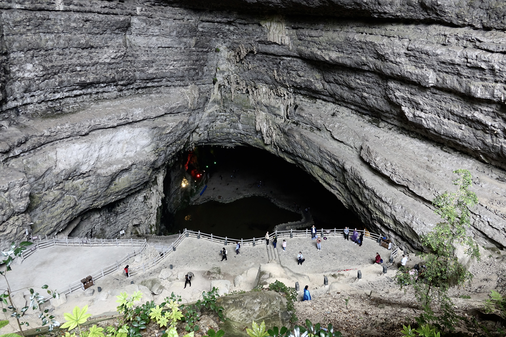 天坑是喀斯特地貌中的一種,它的形成是因為水不斷侵蝕固體基巖,使溶洞頂部發(fā)生坍塌,最終在地表形成一個巨大的深坑,這個深坑就被稱為天坑。李仁奇 攝