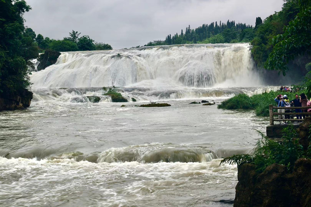 陡坡塘瀑布位于黃果樹瀑布上游1公里處,瀑頂寬105米,高21米,是黃果樹瀑布群中瀑頂最寬的瀑布。李仁奇 攝