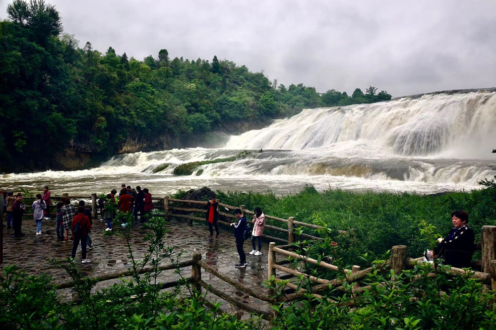 黃果樹瀑布的游客數(shù)以萬(wàn)計(jì),但是能夠在豐水期觀賞到特別壯觀景象的游客卻是少數(shù)。李仁奇 攝