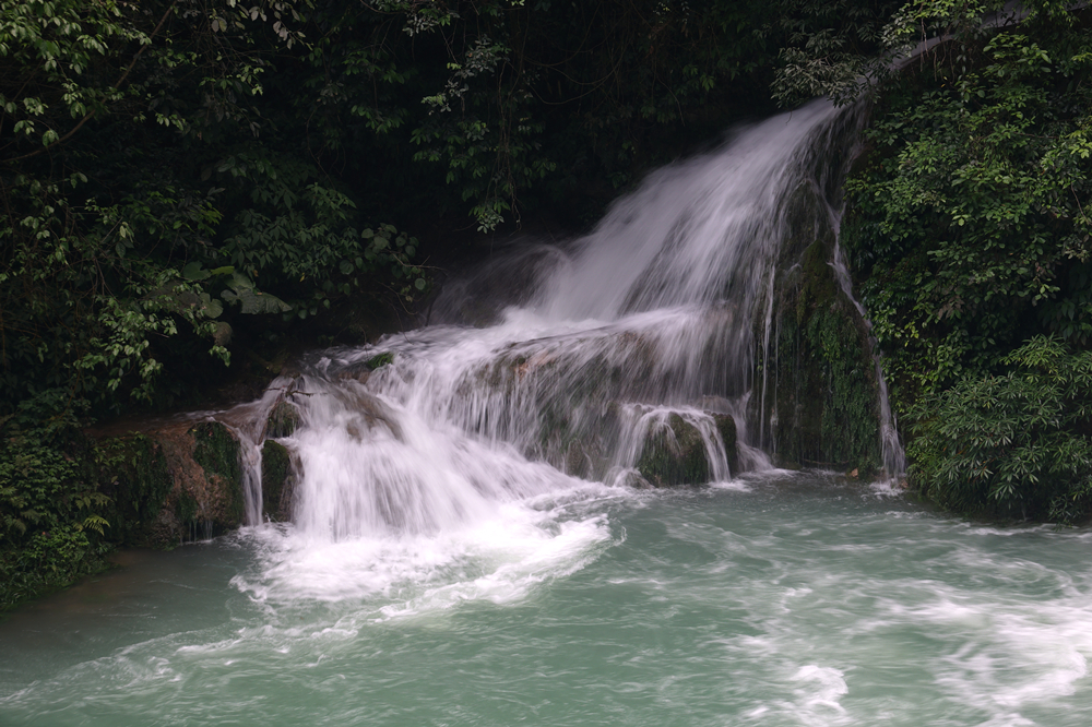 拉雅瀑布距小七孔橋百余米,瀑寬10米,落差30米,瀑勢如山倒,頗為壯觀。李仁奇 攝