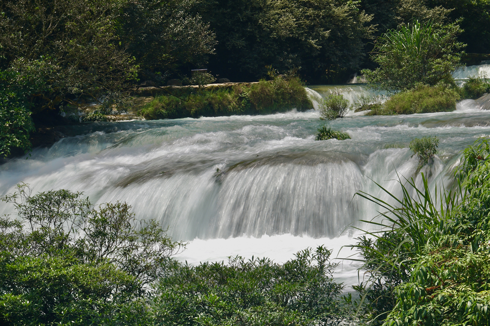 景區(qū)主要有拉雅瀑布、68級跌水瀑布、石上森林、野豬林、水上森林、天鐘洞、臥龍?zhí)?、鴛鴦湖等21個景點,享有“超級盆景”之譽。李仁奇 攝