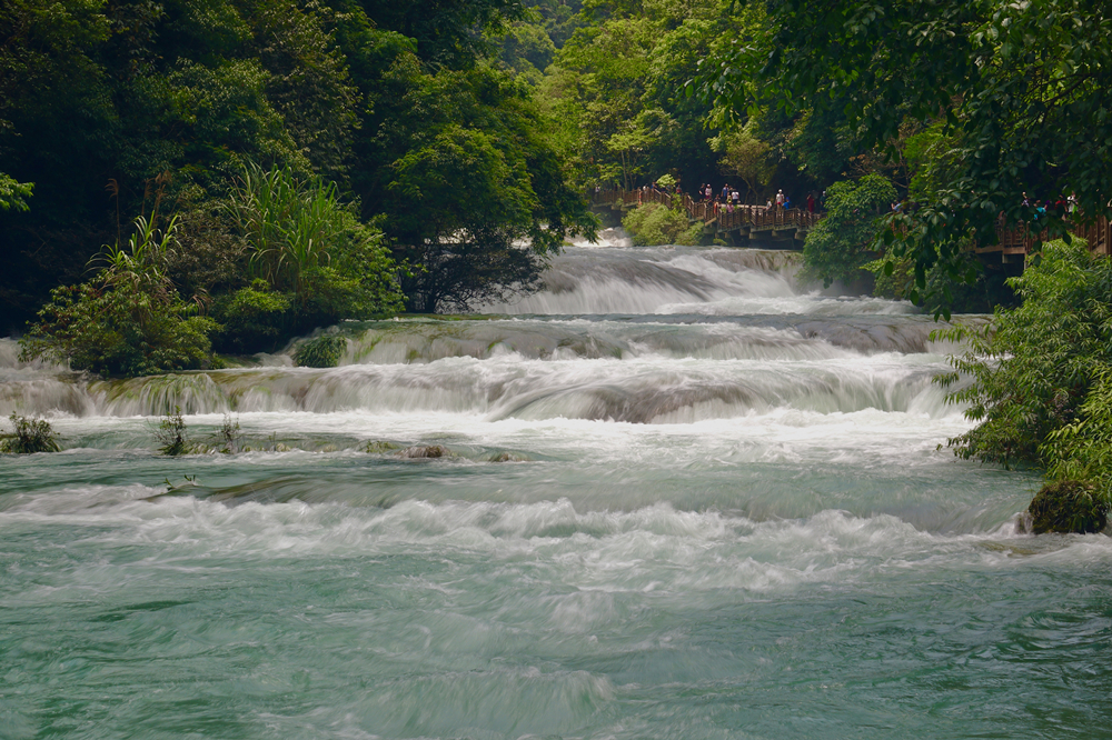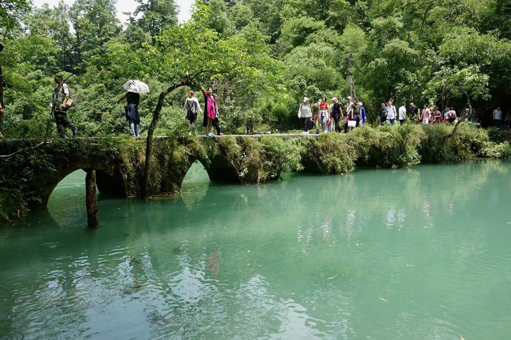 小七孔得名于響水河上一座青石砌成的七孔拱橋,為道光十五年所建。這座古橋與獨特的68級瀑布使得景區(qū)聲名遠播,每年吸引近百萬中外游客前來旅游。李仁奇 攝