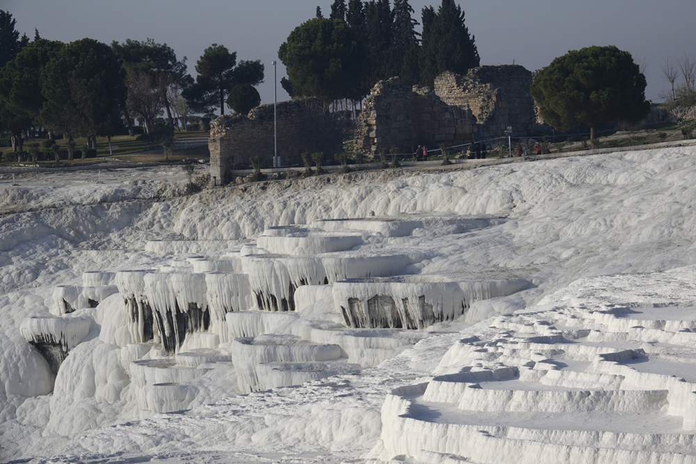 在這里你會(huì)聽到這樣一個(gè)傳說:曾經(jīng),牧羊人安迪密恩為了和希臘月神瑟莉妮幽會(huì),竟然忘記了擠羊奶,致使羊奶恣意橫流,蓋住了整座丘陵,這便是土耳其民間有關(guān)棉花堡的美麗來由。李仁奇 攝