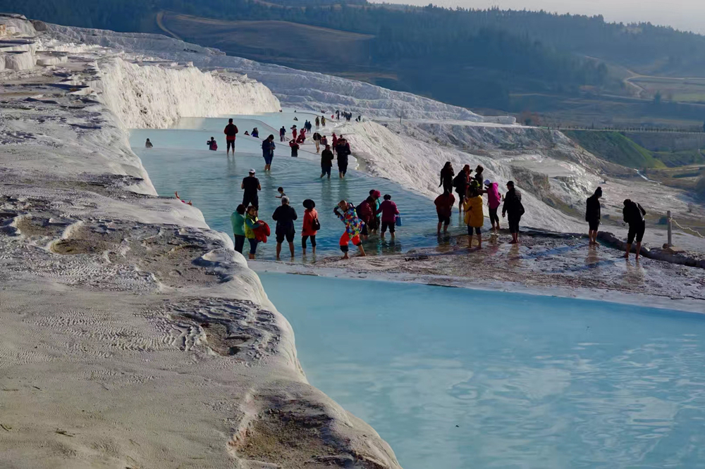 棉花堡是土耳其最著名的旅游景區(qū)之一,位于土耳其西南部紡織工業(yè)城市代尼茲利附近,與緊鄰它的希拉波利斯古城一起被聯(lián)合國(guó)教科文組織列為世界自然文化雙遺產(chǎn)。李仁奇 攝