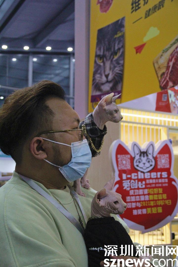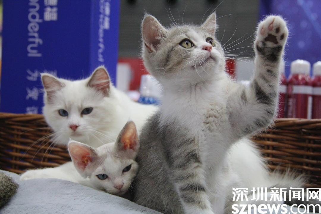 參展商展示自家高顏值貓咪,貓咪與游客互動。