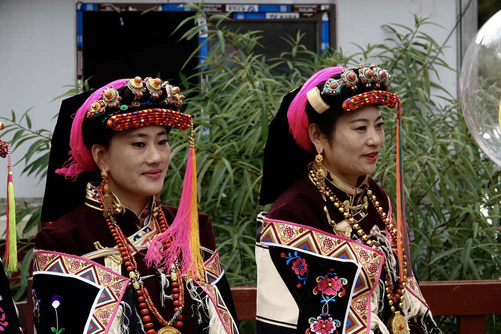嘉絨人多彩的頭飾(背面)。李仁奇 攝
