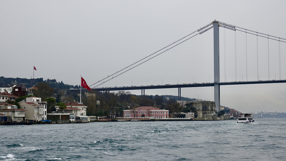 博斯普魯斯跨海大橋在市區(qū)中心橫跨歐亞大陸之間的博斯普魯斯海峽,成為這座城市的地標(biāo)。李仁奇 攝