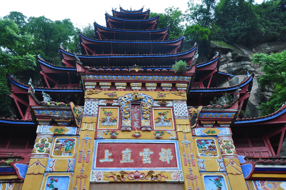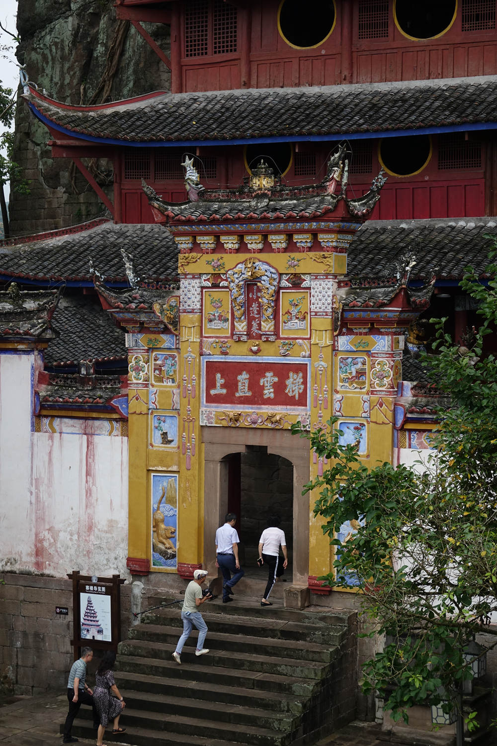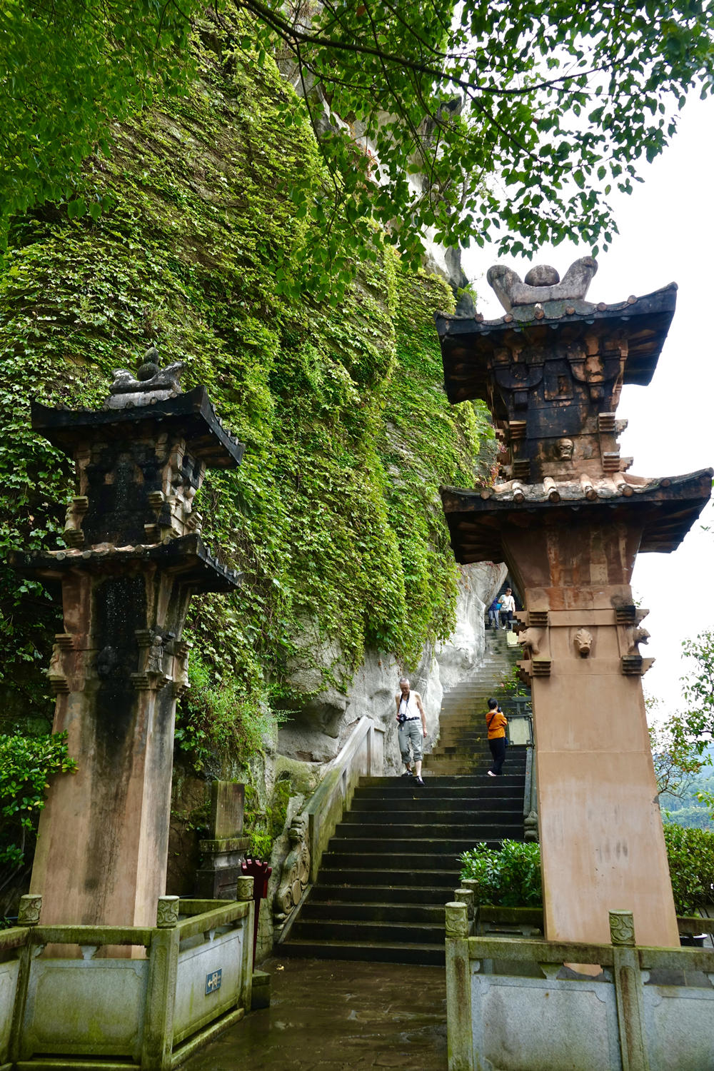 全寨共分兩部分,山下9層和山上3層錯落有致,從遠(yuǎn)處眺望12層樓重檐高聳,渾然一體,宏偉壯觀,共高56米,閣內(nèi)每層石壁上均有題詠。李仁奇 攝