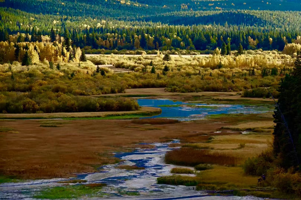 班夫朱砂湖也叫微米里翁湖,是位于園內(nèi)的一片濕地群,其中國式名稱可能是因為湖面上有大片的紅色水草。李仁奇 攝