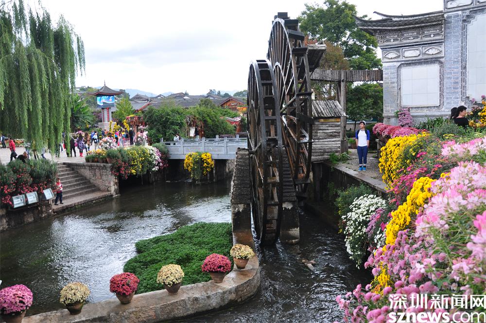 和中國大多數(shù)古城不一樣,這里沒有城墻。位于北部的大水車入口通常被認(rèn)定為古城的正門,也是游客的打卡點。李仁奇 攝