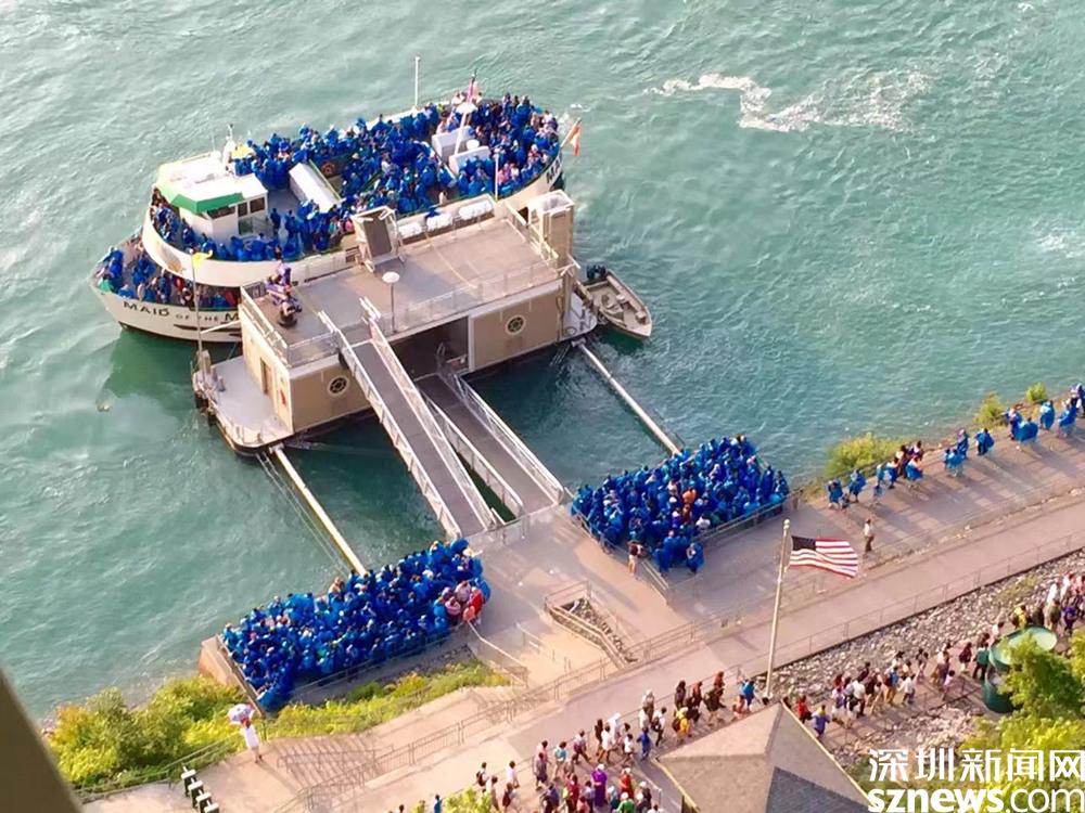 不同的是,在加拿大一側(cè)穿的是紅色雨衣,美國一側(cè)是穿的是藍(lán)色雨衣。李仁奇 攝