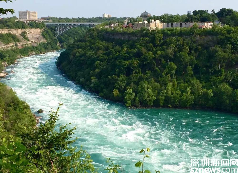 尼亞加拉河河水洶涌澎湃,水花翻滾著如翡翠一般。李仁奇 攝
