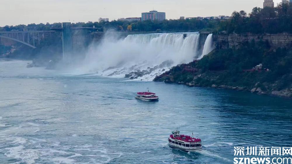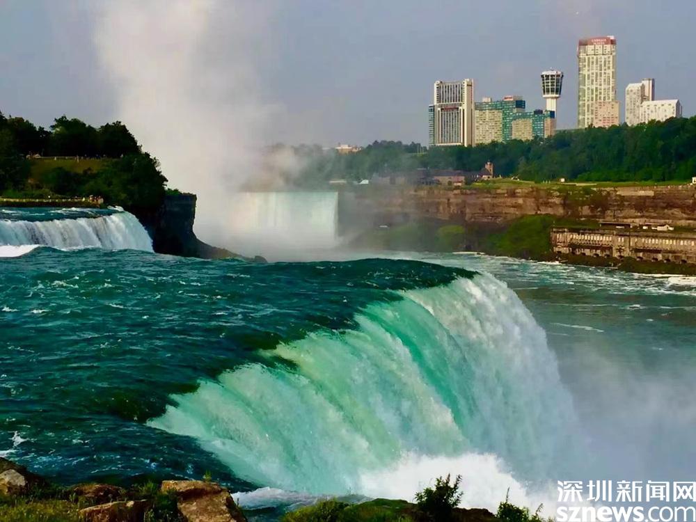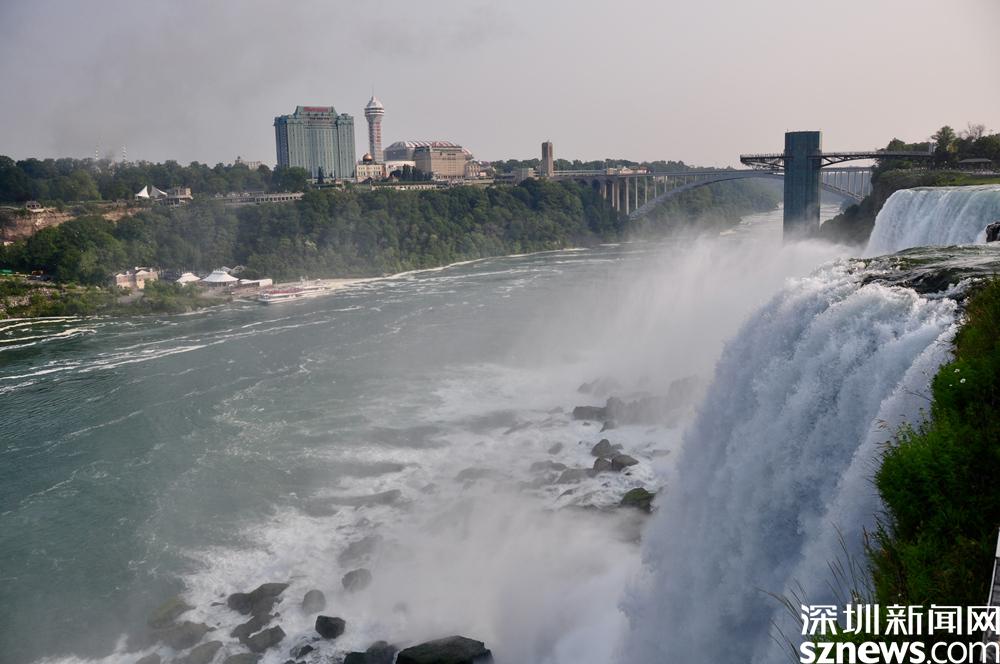 在瀑布兩側(cè),有兩座都叫尼亞加拉瀑布城的姐妹城市,一個(gè)隸屬于加拿大的安大略省,另一個(gè)隸屬于美國的紐約州,兩城隔河相望。李仁奇 攝