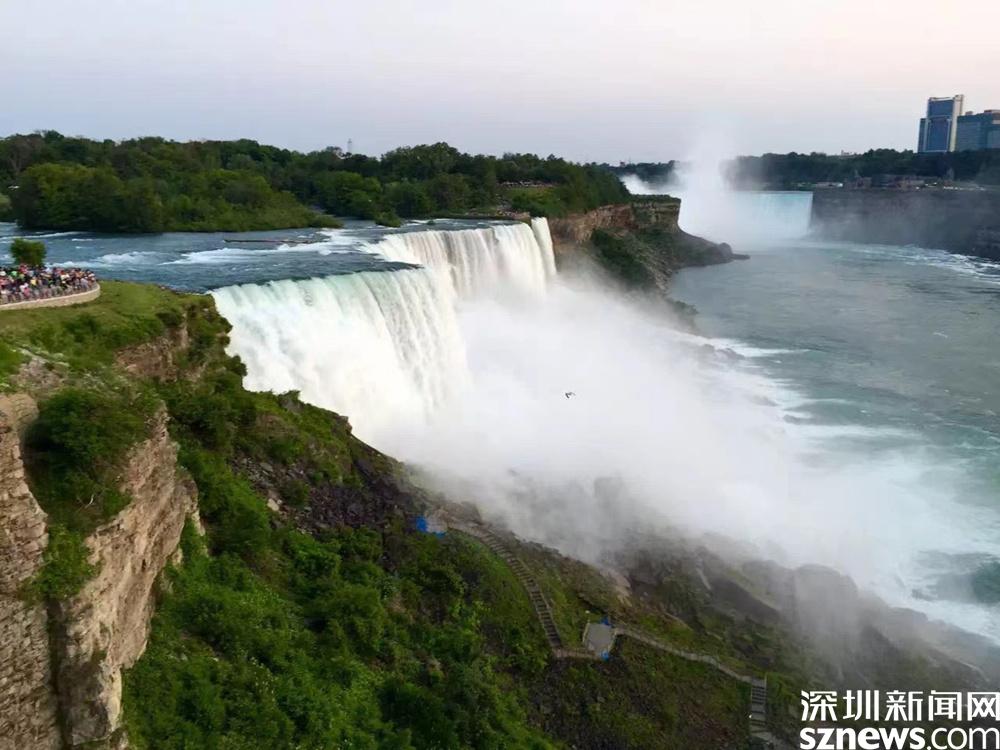 從加拿大這邊的觀景臺(tái)和河岸的維多利亞皇后公園可以看到尼亞加拉瀑布?jí)邀惖娜?,而美?guó)的瀑布城則只能看到局部。李仁奇 攝