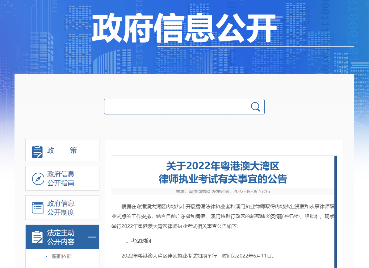2022年粵港澳大灣區(qū)律師執(zhí)業(yè)考試內容、成績公布及核查等事宜,按照2021年12月公布的《中華人民共和國司法部公告》(第9號)執(zhí)行。