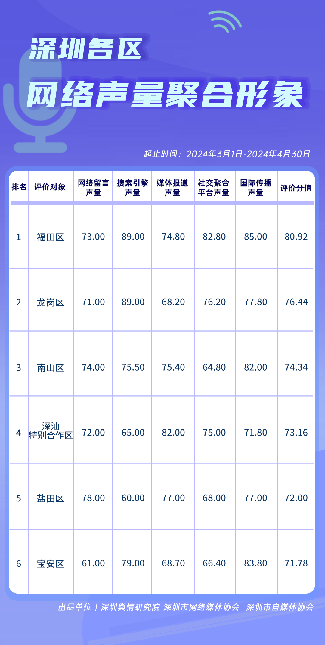 為全面評估深圳各區(qū)各單位網(wǎng)絡(luò)形象建設(shè)情況,助力各區(qū)各單位持續(xù)響應(yīng)居民對美好生活的期許,賦能城市高質(zhì)量發(fā)展,深圳輿情研究院、深圳市網(wǎng)絡(luò)媒體協(xié)會、深圳市自媒體協(xié)會聯(lián)合推出“深圳各區(qū)各單位網(wǎng)絡(luò)形象建設(shè)榜”,從網(wǎng)絡(luò)聚合聲量、留言互動成效、社會生活評價、輿情管理能力及新媒體傳播水平等方面,多維度分析深圳各區(qū)(含大鵬新區(qū)、深汕特別合作區(qū))、各市直單位(市直屬單位、直屬部門)的網(wǎng)絡(luò)形象建設(shè)成果,凸顯各區(qū)各單位的“共性”與“個性”。