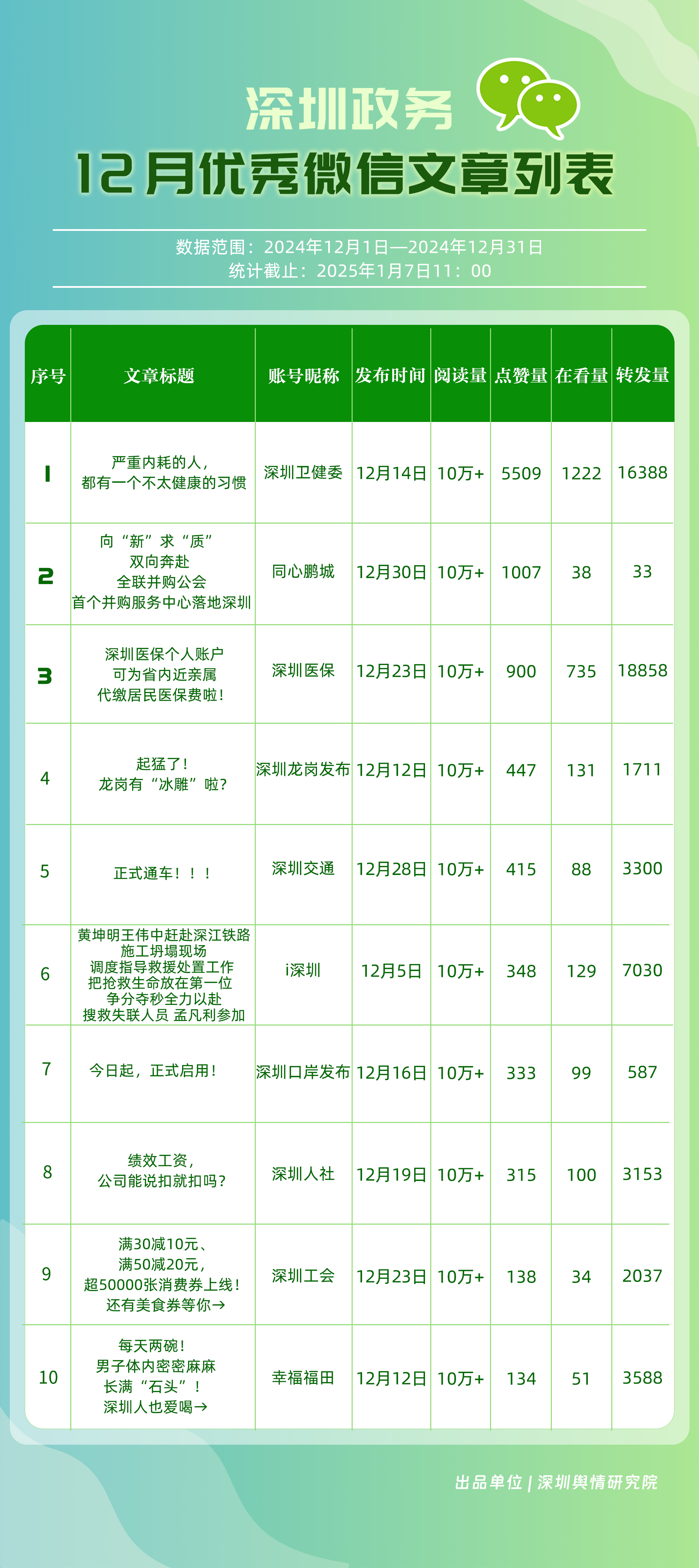 四、12月深圳優(yōu)秀政務(wù)新媒體賬號