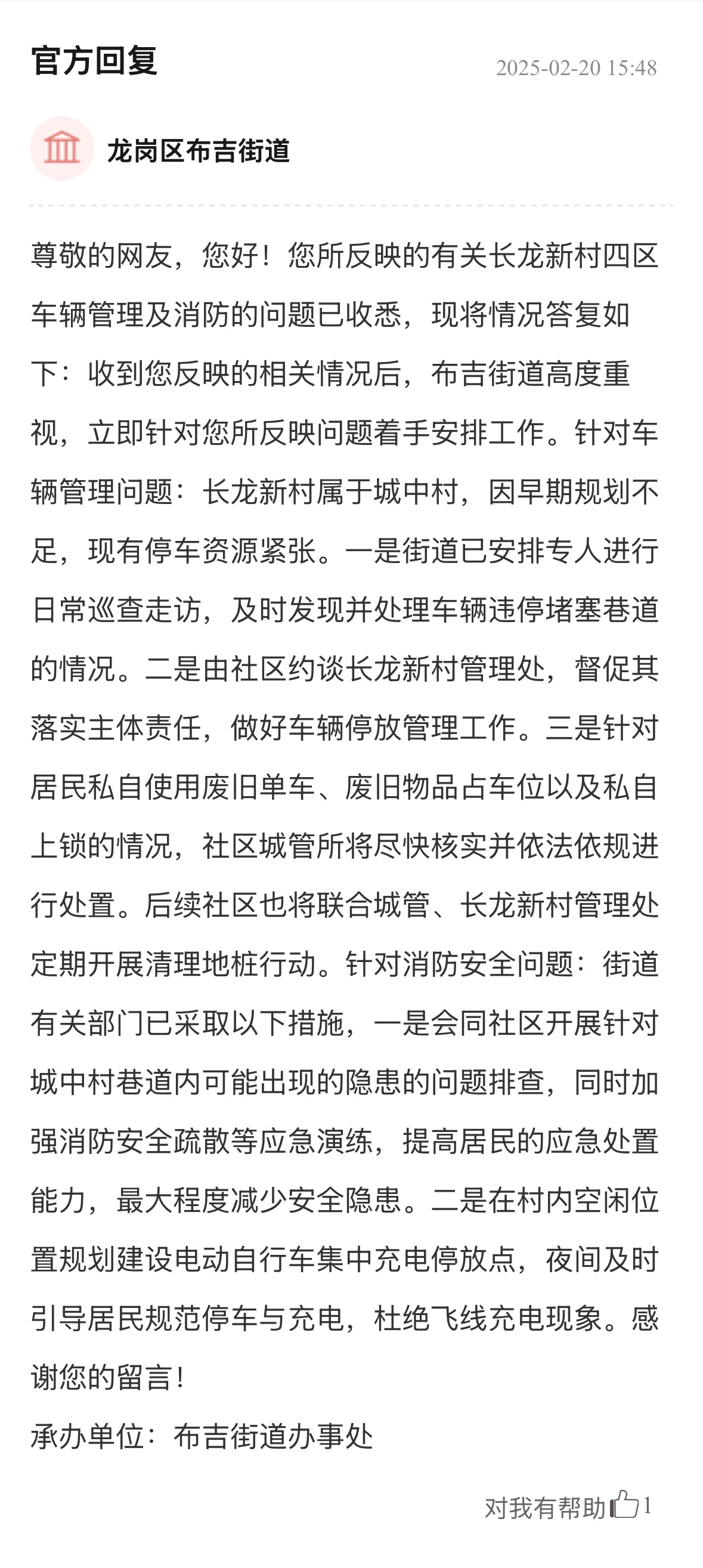 有市民反映龍崗區(qū)一城中村存在車輛管理和消防安全問題,影響居民的居住安全與生活安全