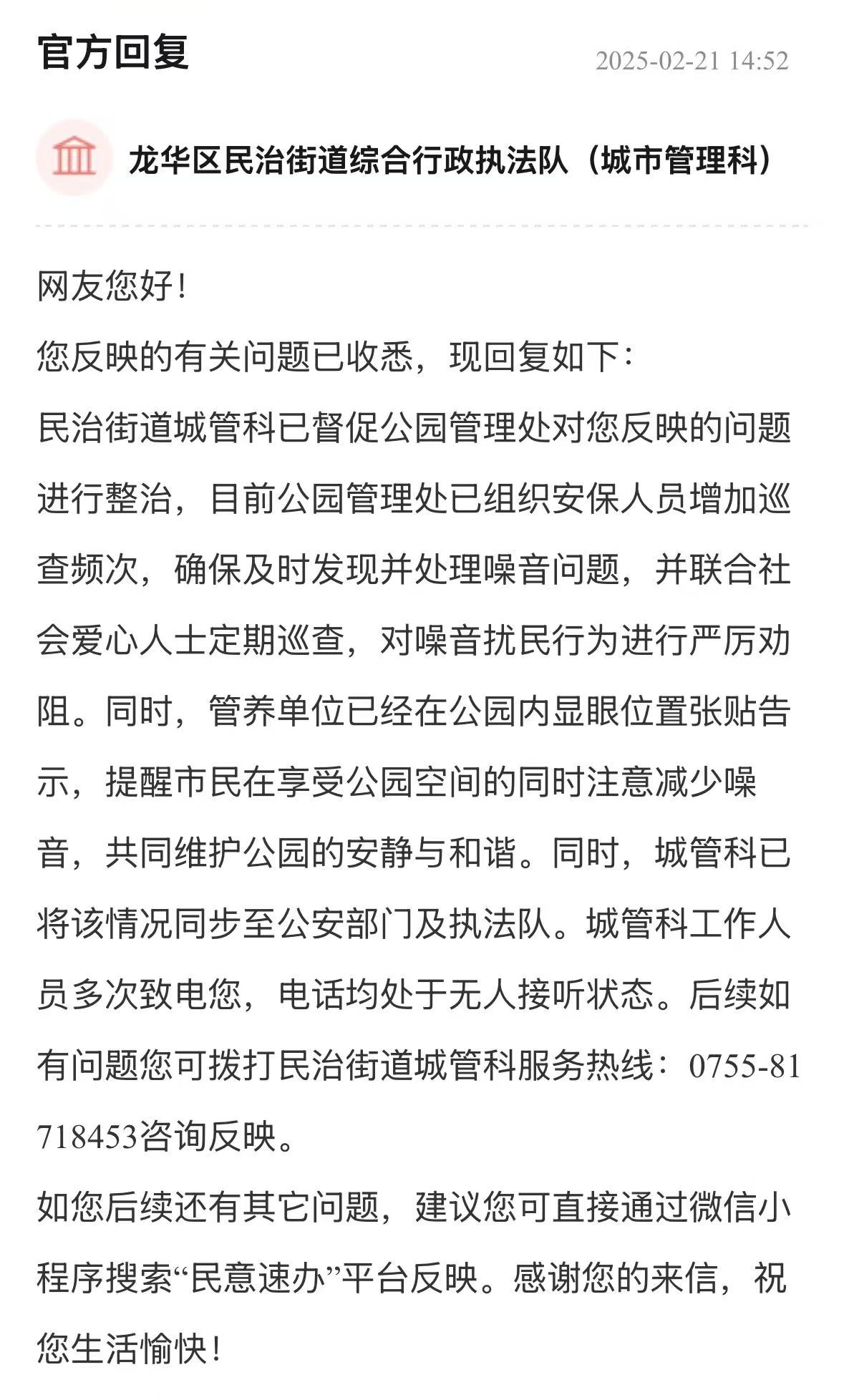 案例點評:街道以“即時處置+源頭預防”雙軌并進:安保巡查形成震懾,警示標識強化行為引導,多部門聯(lián)動執(zhí)法。不過,噪音問題易反彈,也限制了市民業(yè)余活動,建議后續(xù)建立長效管理機制,如分時段音量管控、智能化監(jiān)測設備等,將“柔性引導”與“剛性約束”結合,切實守護鬧靜皆宜的公共空間秩序。