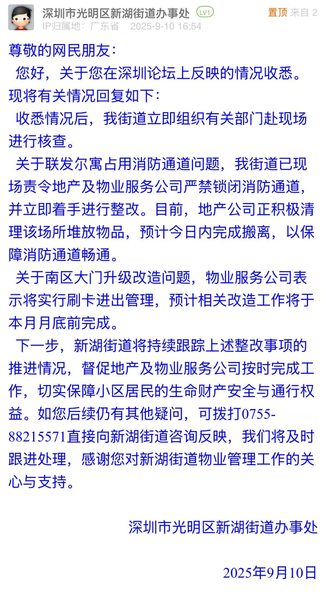 案例點評:消防通道是保障居民生命安全的“生命通道”,在突發(fā)狀況下肩負著關(guān)鍵作用。針對小區(qū)消防通道被違規(guī)占用這一安全隱患,新湖街道辦第一時間責令責任方整改,高效推動障礙物清理,暢通消防通道。對于市民小區(qū)大門升級改造的訴求,街道辦的回應(yīng)明確了刷卡管理改造的時間節(jié)點,以實際行動推動安全隱患消除、提升小區(qū)管理品質(zhì),充分彰顯了基層治理的責任擔當與務(wù)實智慧。