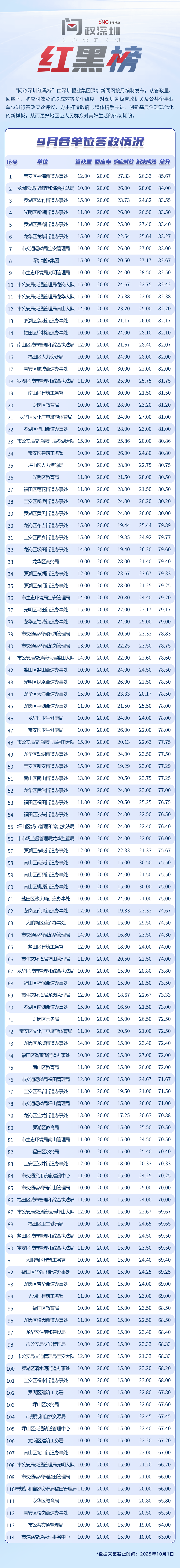 為探尋媒體如何精準賦能基層治理現(xiàn)代化的“深圳路徑”,深圳報業(yè)集團正式掛牌成立“問政深圳”工作室,旨在進一步推動網(wǎng)絡(luò)問政工作的高效開展。為確保相關(guān)工作更加契合實際需求,自上期起,深圳報業(yè)集團深圳新聞網(wǎng)按照“最快速度辦結(jié)”的總體要求,將原有月度榜單創(chuàng)新升級為“問政深圳紅黑榜”,并對評分體系進行了細致優(yōu)化。該榜單從答政量、回應(yīng)率、響應(yīng)時效及解決成效等多個維度,對深圳各級黨政機關(guān)及公共企事業(yè)單位進行答政實效評議,力求打造政府與媒體攜手共進、創(chuàng)新基層治理現(xiàn)代化的新樣板,從而更好地回應(yīng)人民群眾對美好生活的熱切期盼。