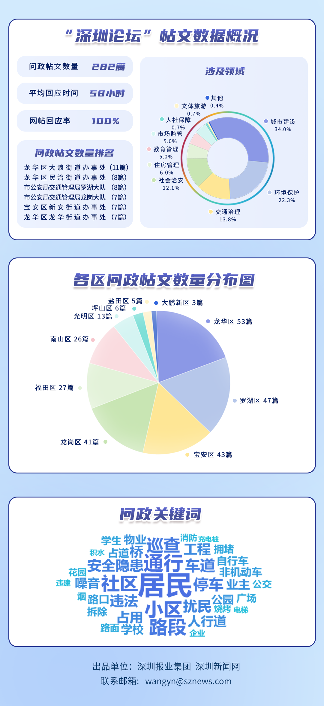 榜單帖文數(shù)據(jù)源自深圳論壇,均為網(wǎng)民點(diǎn)名希望涉事單位回應(yīng)的網(wǎng)帖,共涵蓋118個(gè)單位、282篇網(wǎng)帖。所采集帖文發(fā)布時(shí)間為2025年10月1日至10月31日,采集截止時(shí)間為2025年11月1日。