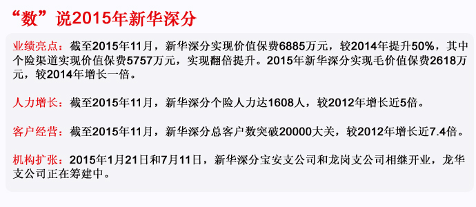 新華人壽保險股份有限公司深圳分公司(新華深分)進入深圳僅僅四年時間,秉持“創(chuàng)造價值、穩(wěn)健持續(xù)”的經營理念,憑借拼搏、專注、熱忱的奮斗精神,致力于為客戶帶來覆蓋全生命周期的優(yōu)質專業(yè)服務,在市場上異軍突起,創(chuàng)造了一個又一個成長“奇跡。