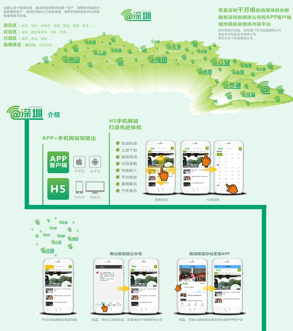 入駐的黨政自媒體:之前入駐的深圳發(fā)布、市交委、公安發(fā)布、政協(xié)、民政、公積金管理中心、市質(zhì)監(jiān)、工務(wù)署、司法、衛(wèi)計委、口岸辦、人社、文博會之外,近期入駐的大V伙伴還有深汕視點、深圳通等。各區(qū)(新區(qū))官方微信公眾號均組團(tuán)入駐。