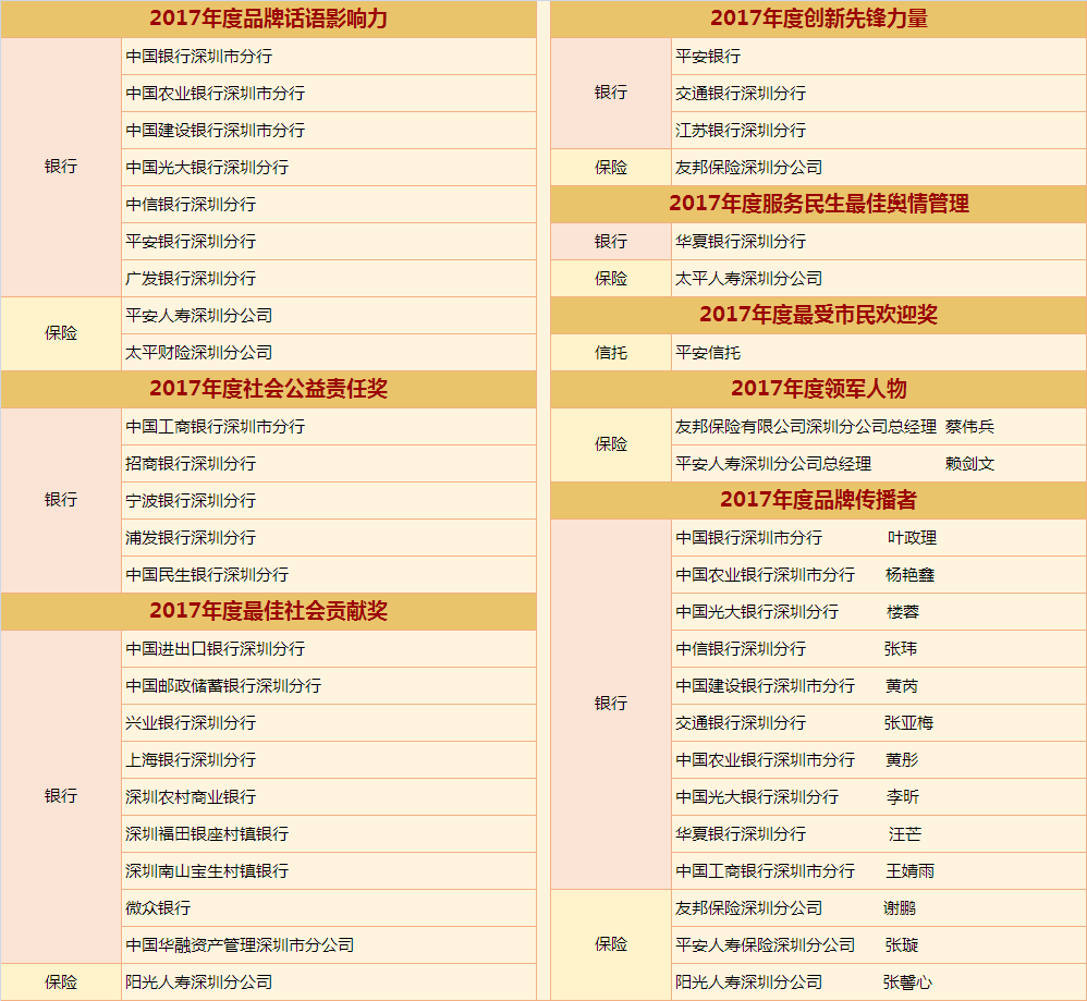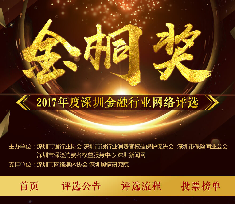 2017年,深圳金融實(shí)現(xiàn)快速發(fā)展。為了讓金融真正回歸服務(wù)實(shí)體經(jīng)濟(jì)的本源,真正脫虛向?qū)?,深圳新聞網(wǎng)將聯(lián)手行業(yè)權(quán)威協(xié)會(huì)、第三方機(jī)構(gòu)、媒體,以“新時(shí)代·新服務(wù)·新金融”為主題,以深圳金融機(jī)構(gòu)如何回歸本原、改革創(chuàng)新、服務(wù)實(shí)體經(jīng)濟(jì)為核心,從“品牌話語影響力”、“創(chuàng)新先鋒力量”、“輿情管理 服務(wù)民生”三個(gè)角度出發(fā),邀請(qǐng)眾多金融機(jī)構(gòu)共同發(fā)力,自覺加入金融回歸服務(wù)實(shí)體經(jīng)濟(jì)本源這一滾滾時(shí)代洪流中來。作為一個(gè)金融公民,我們也盡一份該盡的社會(huì)責(zé)任,為市民遴選最能代表深圳本地實(shí)力及形象的金融機(jī)構(gòu),同時(shí)頒發(fā)重磅大獎(jiǎng):“金桐獎(jiǎng)——年度品牌話語影響力”、“金桐獎(jiǎng)——年度創(chuàng)新先鋒力量”、“金桐獎(jiǎng)——服務(wù)民生最佳輿情管理”。