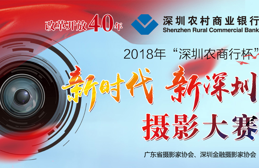 十九大后,中國(guó)特色社會(huì)社會(huì)主義進(jìn)入新時(shí)代、開啟新征程,為全面展示作為中國(guó)改革開放前沿的深圳經(jīng)濟(jì)特區(qū)的新面貌,表現(xiàn)深圳經(jīng)濟(jì)特區(qū)在中國(guó)改革開放40年來(lái)城市建設(shè)和各行各業(yè)的新成就、新面貌、新風(fēng)尚、新舉措,由深圳農(nóng)村商業(yè)銀行冠名承辦,廣東省攝影家協(xié)會(huì)、深圳金融攝影家協(xié)會(huì)主辦了2018年“深圳農(nóng)商行杯”新時(shí)代·新深圳攝影大賽。