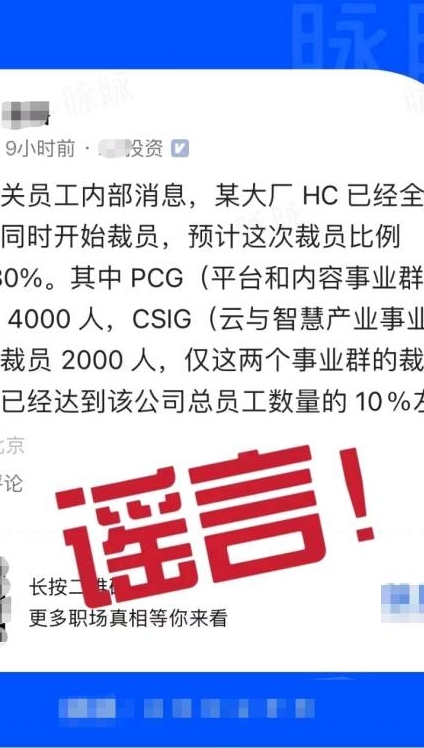 2024-04-21騰訊裁員比例高達10%到30%?辟謠了!